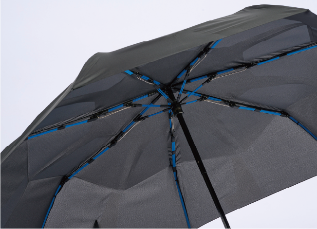 世界初の形態安定技術により、傘の裏側に貼られた