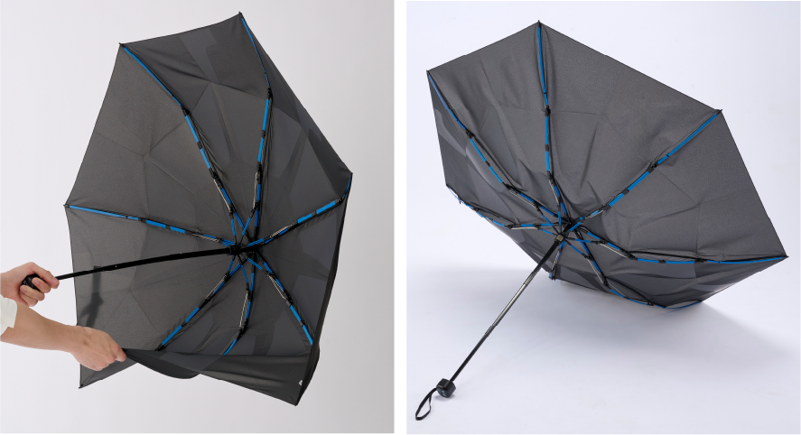 あくまで傘骨の高強度実証試験ですので、強風時の使用はお避け下さい。